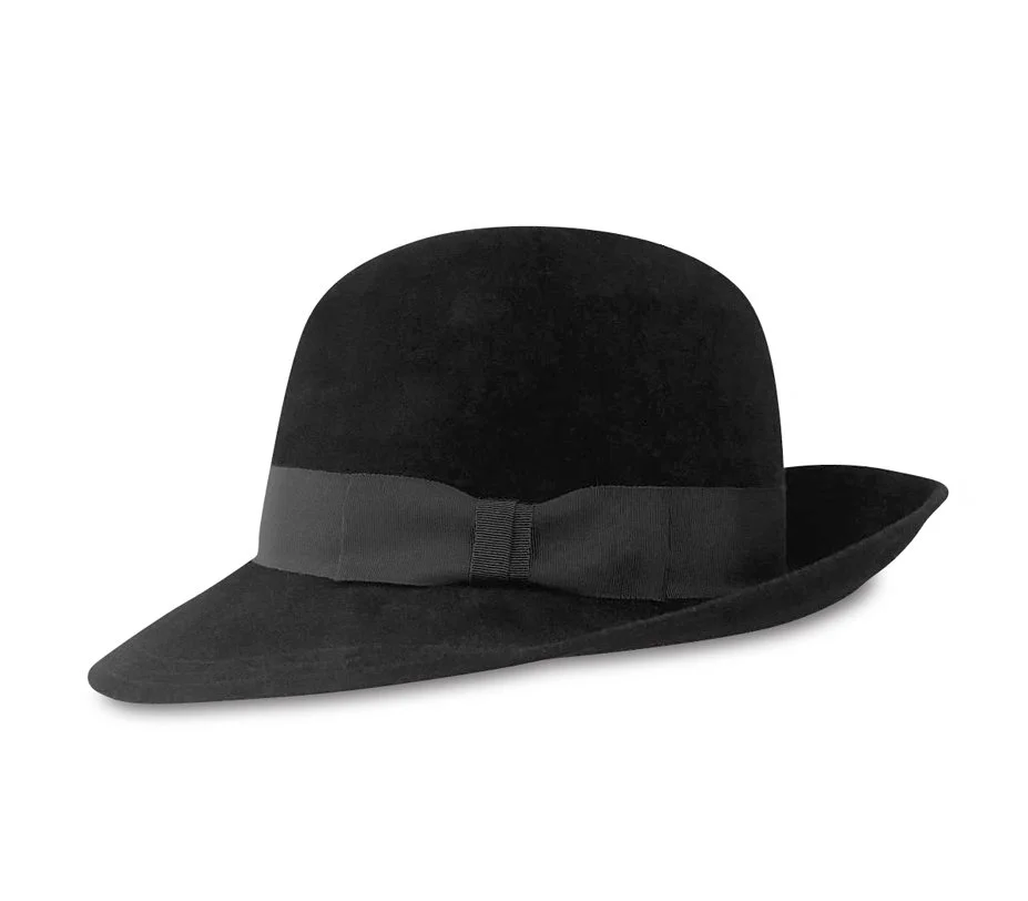 The asymmetric brim of the “Nana” adds panache to this classic fedora. Pair it with a trench-coat, tweed or denim and you get instant “mystique”.